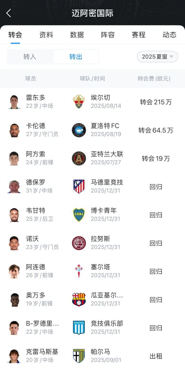 迈阿密国外本年先后放走了多名球员,其中包括泰勒、法里亚斯、卡伦德、雷东多、克雷马斯基等球员。