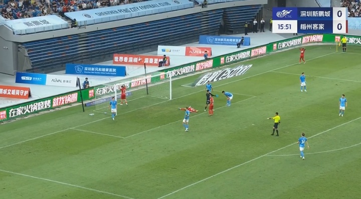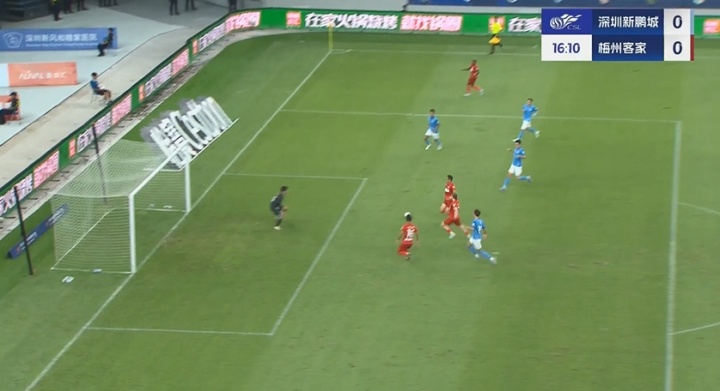 比赛第16分钟,恩戈姆边路个东谈主智商东谈主球分过冲破后传中,门前梅州三东谈主包抄真实离谱踢歪。