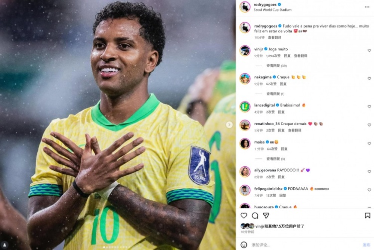 赛后罗德里戈也在社媒晒出本场庆祝进球相片,配文写说念:“为管待像今天这么的日子一切付出皆是值得的,额外欢腾省略归来。”