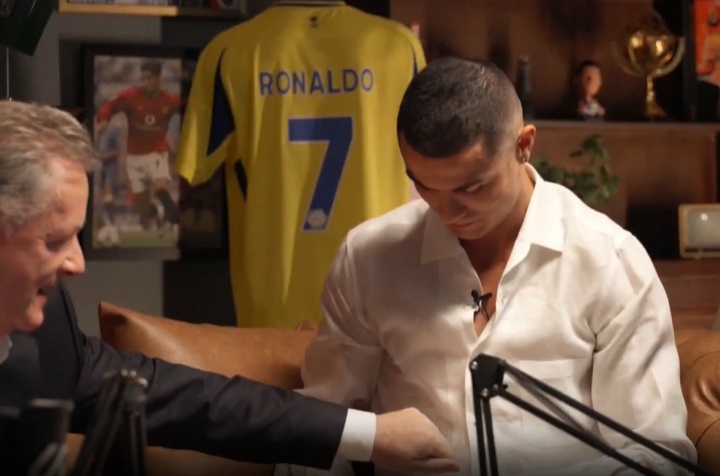 C罗: 不,我的体格素质……我认为我看起来年青得多,虽然。因为我仍然……我从十二、十三、十四岁就启动健身了。