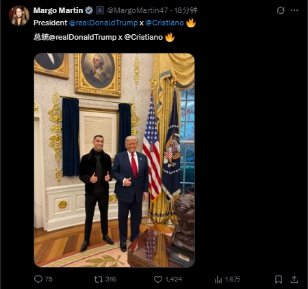 排面!白宫总统助剃头布:C罗与特朗普在白宫合影图