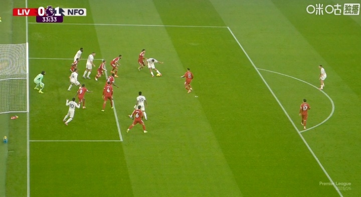 但慢镜头表示,处于越位位置的恩多耶疑似骚动了阿利松的视野。