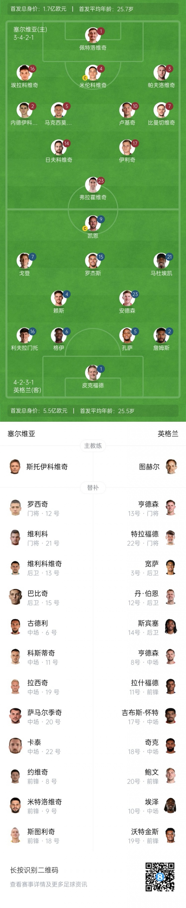 英格兰谢世初赛已得益4连胜,塞尔维亚也3场2胜1平保合手不败。