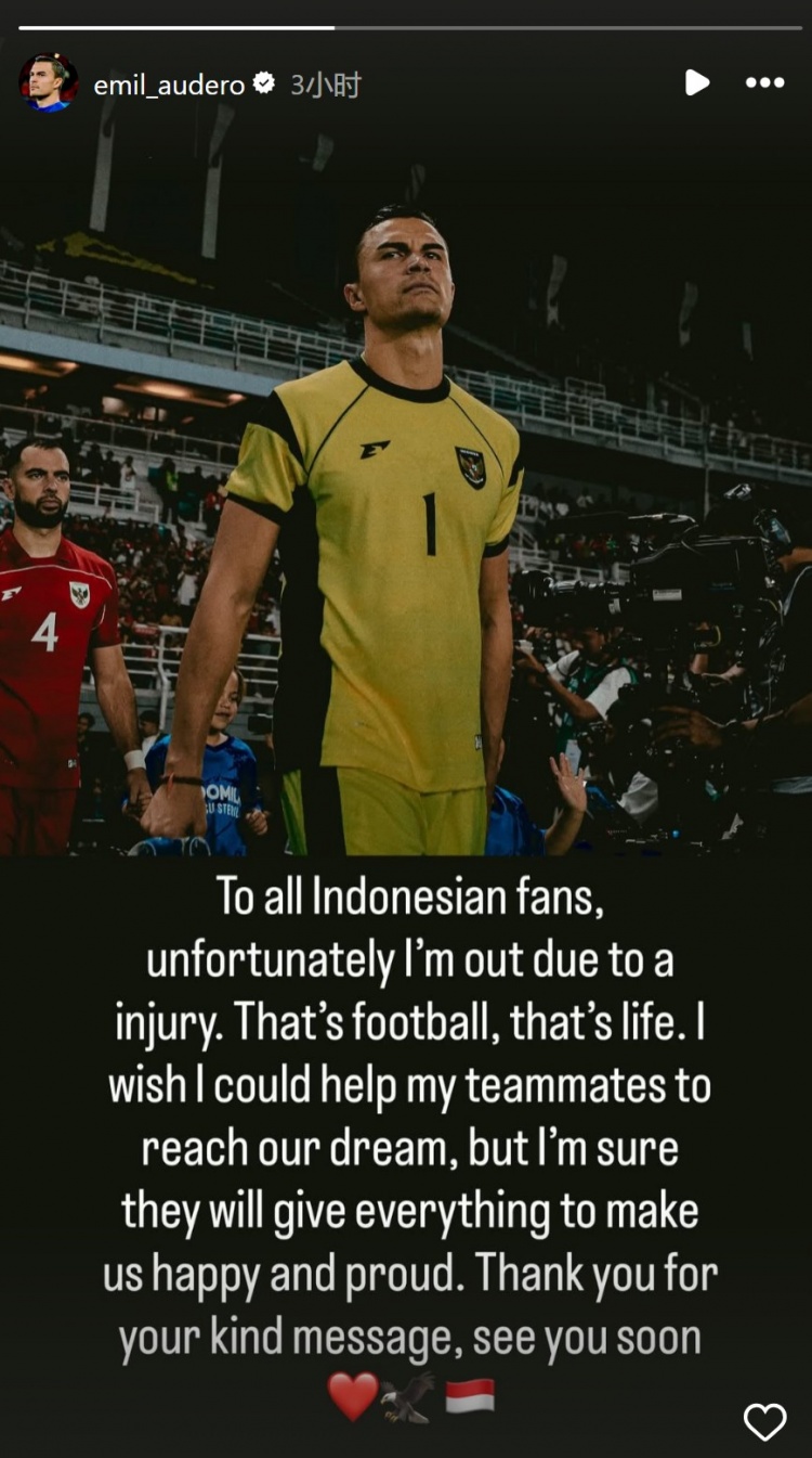 印尼门将奥代罗社媒:我因伤退出本期国度队,感谢环球的祈福信息