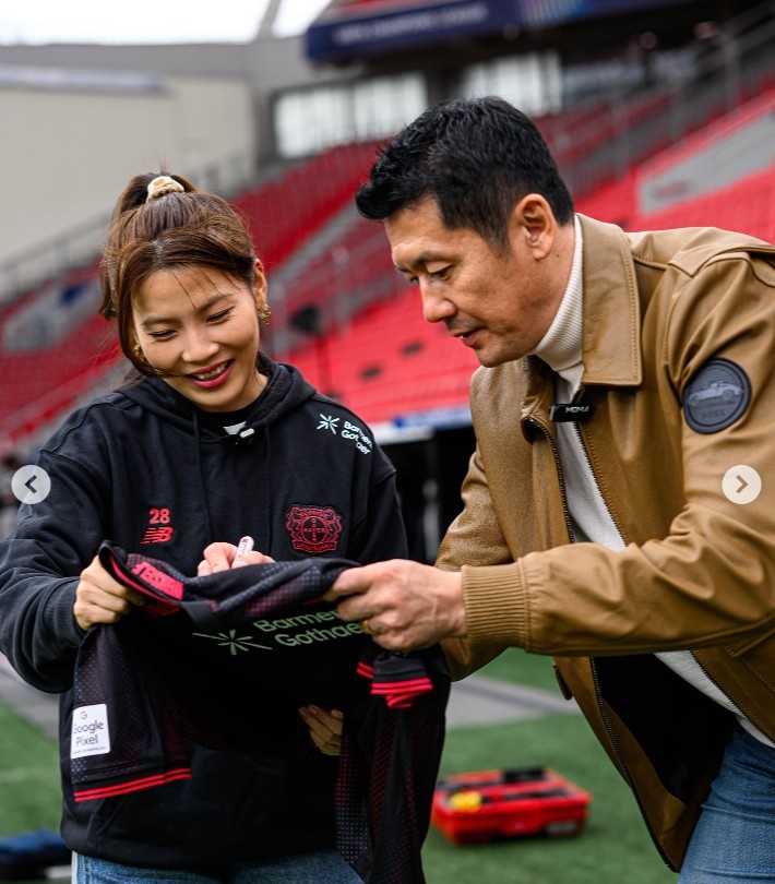 勒沃库森女足晒出沈梦露理睬杨晨的相片,并配文:中国首位德甲球员与咱们的首位中国球员相见在黑红十字下,杨晨访问拜耳竞技场,沈梦露理睬并奉陪参不雅。