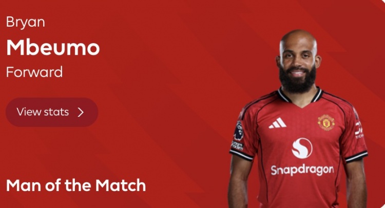 💪络续勤恳!姆伯莫当选为曼联客战丛林全场比赛最好球员