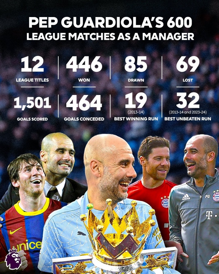 09月16日讯 曼市德比,曼城3-0打败曼联,主帅瓜迪奥拉迎来个东说念主握教活命的第600场联赛。英超官方晒出了瓜帅600场创造的各项记录,并提问:瓜迪奥拉握教巴萨、拜仁与曼城的记录,你合计他是史上最伟大的阐发吗?