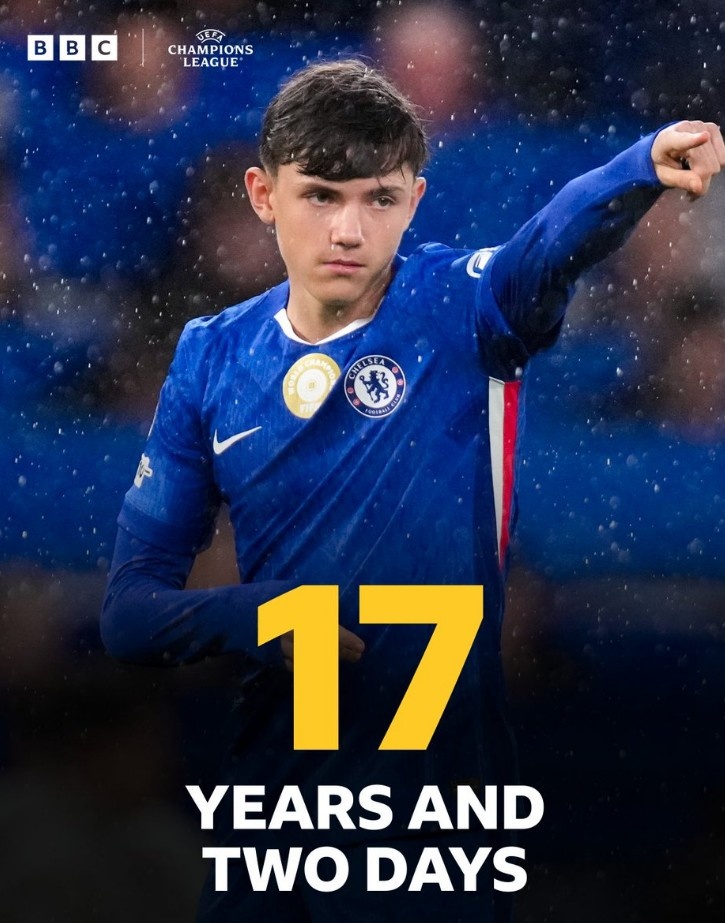 据统计,17岁的沃尔什创造了蓝部队史最年青欧冠登场记载。