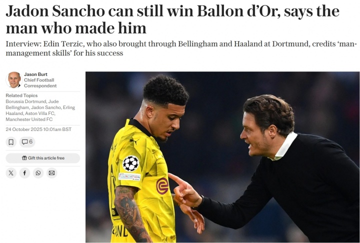 10月24日讯 英媒《逐日电讯报》采访了前多特主帅泰尔王人奇,聊到了多名他曾同事过的高身价球员。其中关于桑乔,泰尔王人奇暗示“他也还有得到金球奖的契机”。