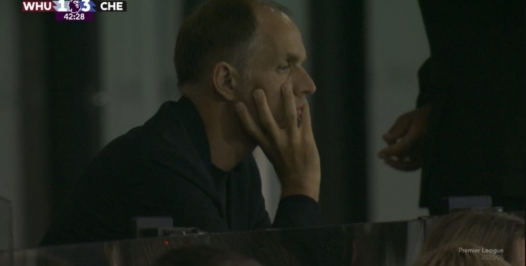 若有所想!英格兰主帅图赫尔现场不雅战西汉姆联VS切尔西
