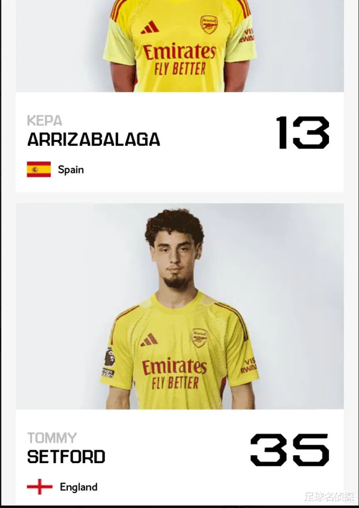 塞特福德出当今了阿森纳一线队的官方名单中,这名门将其实从上赛季末动手就成为了一线队的一部分。