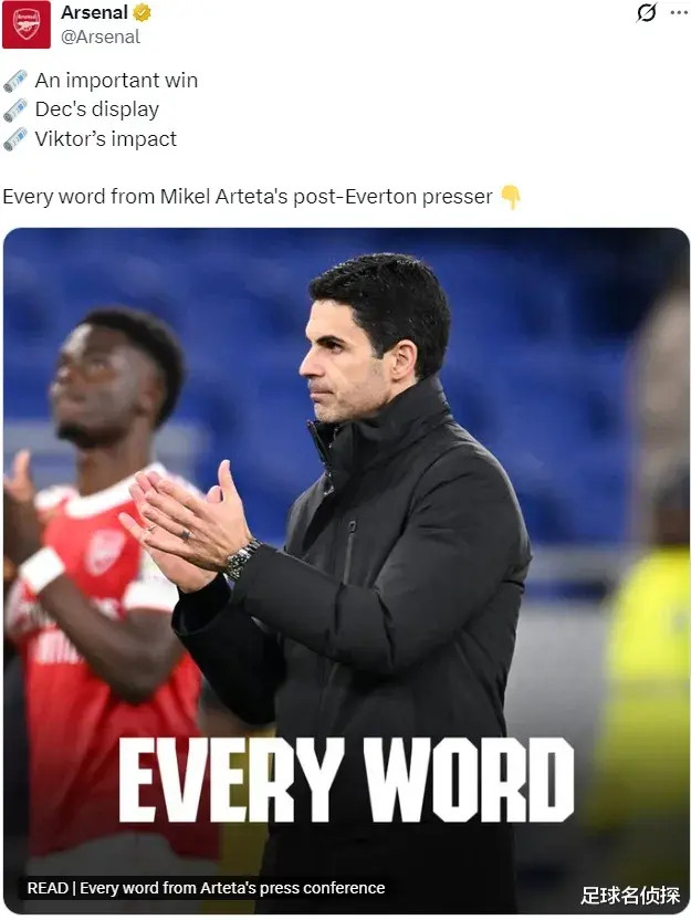 阿尔特塔出席了赛后新闻发布会,咱们来望望阿森纳主帅的发言。