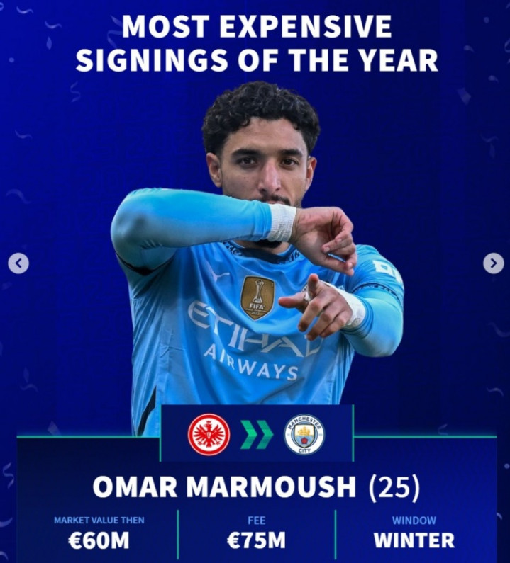 马尔穆什(25岁):法兰克福→曼城,身价6000万中足联,转会费7500万