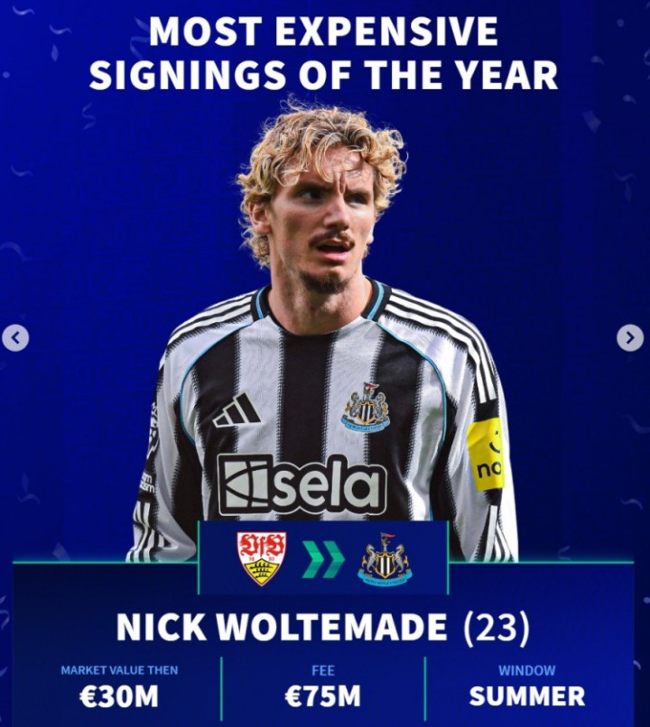 沃尔特马德(23岁):斯图加特→纽卡斯尔,身价3000万,转会费7500万