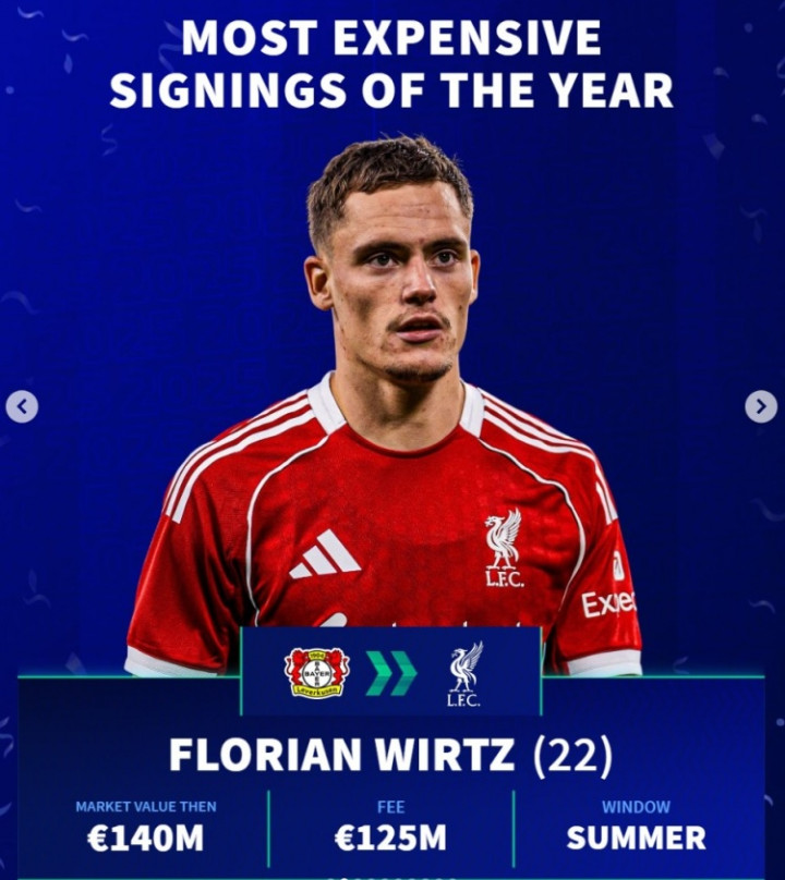 直播吧12月29日讯2025年行将松手,《转会市集》也归来清点了本年最贵转会前十,利物浦包揽前三。