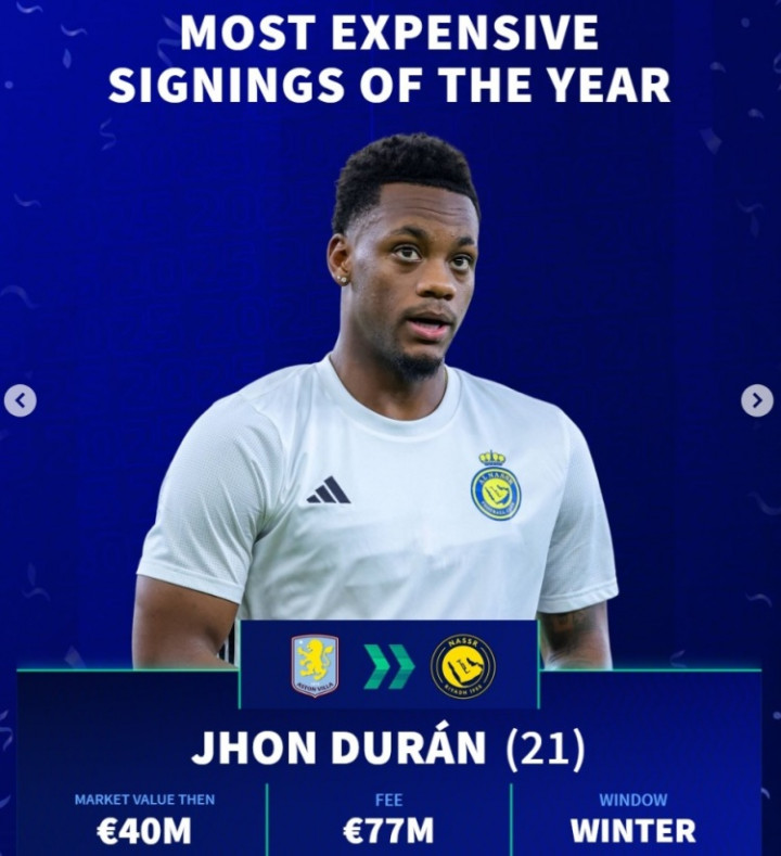 杜兰(21岁):阿斯顿维拉→利雅得告成,身价4000万,转会费7700万